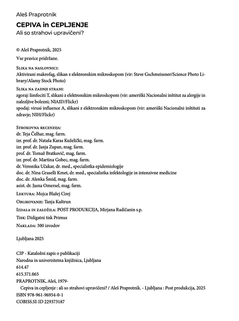 Opozoril bi na novo obsežno knjigo z naslovom CEPIVA in CEPLJENJE: Ali so strahovi upravičeni?, ki jo je napisal Aleš Praprotnik. Avtor ni zdravnik, farmacevt ali strokovnjak s področja biomedicine, ampak diplomirani socialni pedagog brez formalne naravoslovne izobrazbe. A prav ta okoliščina se izkaže kot ena od prednosti knjige.