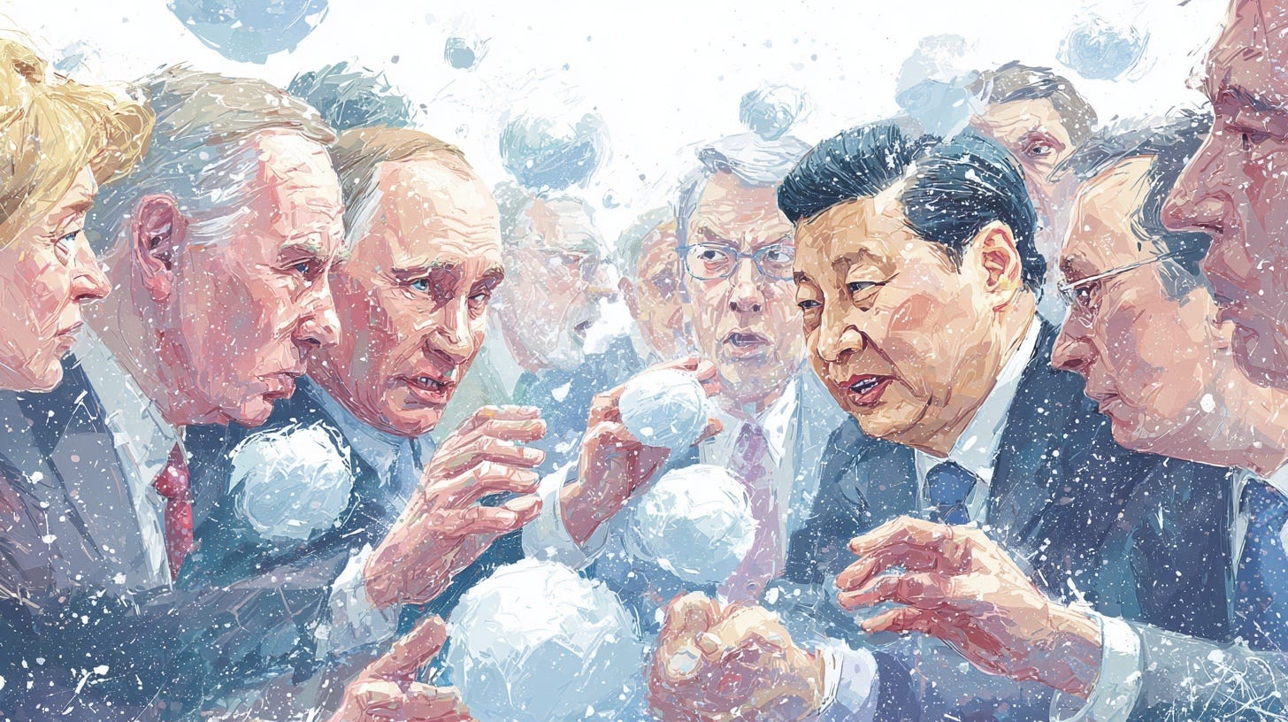 Na drugi strani je globalni vzhod, v katerem ima Kitajska vlogo sistemskega oblikovalca novega reda, Rusija pa vlogo destruktivnega motilca obstoječih pravil. Obe državi zavračata zahodno dominacijo in zagovarjata prerazporeditev moči, vendar z različnima strategijama. Rusija deluje kot agresivni rušilec, ki poskuša z vojaško silo in ustvarjanjem kaosa obnoviti imperij 19. stoletja. Kitajska pa vodi potrpežljivo, dolgoročno igro: obstoječi red želi preoblikovati od znotraj in ga prilagoditi svojim avtoritarnim interesom, pri čemer uporablja gospodarsko odvisnost kot glavni vzvod vpliva. Njuno zavezništvo je izrazito transakcijsko in asimetrično – Rusija Kitajsko potrebuje bistveno bolj, kot Kitajska potrebuje Rusijo.